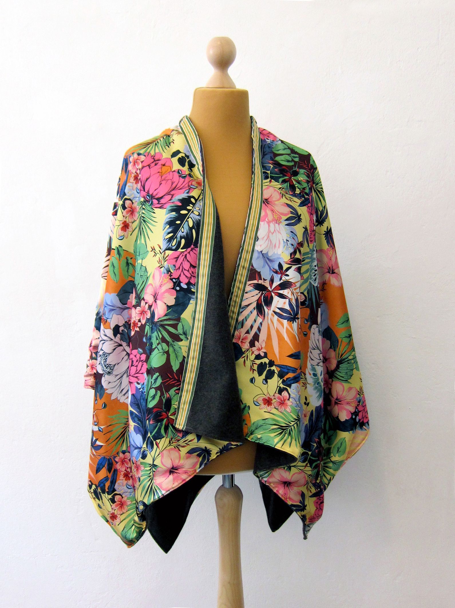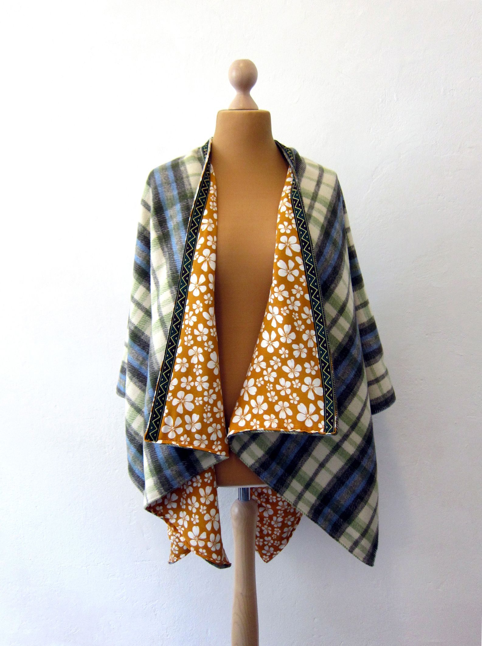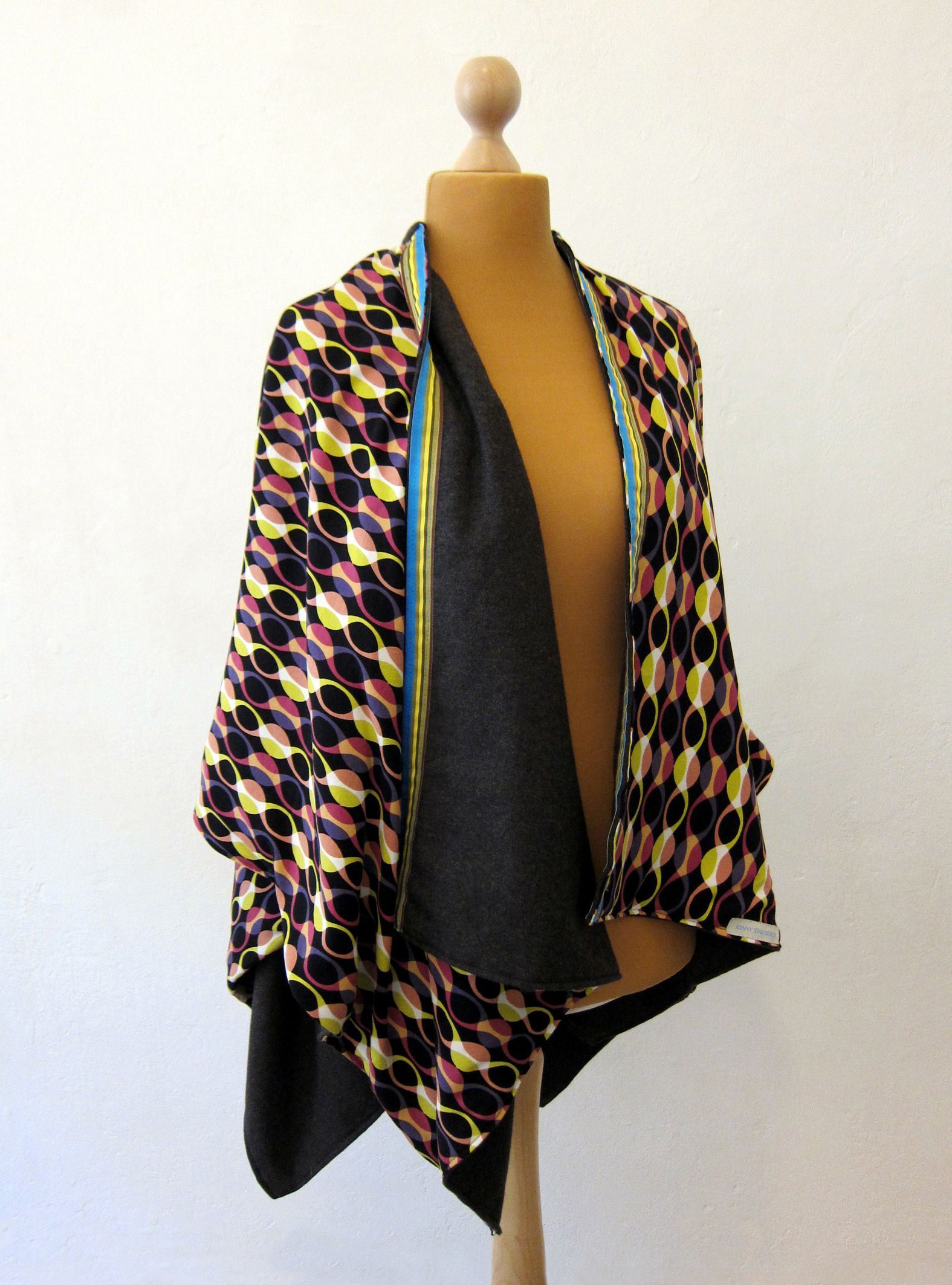 The Helper is a wearable life aid, a real germ, a reversible cape made of different fabrics, bordures and in some cases patches (see pictures below). The Helper warms, is well fitting, protects and can be used as a blanket or seat support. Each The Helper is an intricately crafted one-of-a-kind piece, two capes in one, sewn by hand and machine by the artist. Shipping is possible with additional costs. Available The Helper see below.