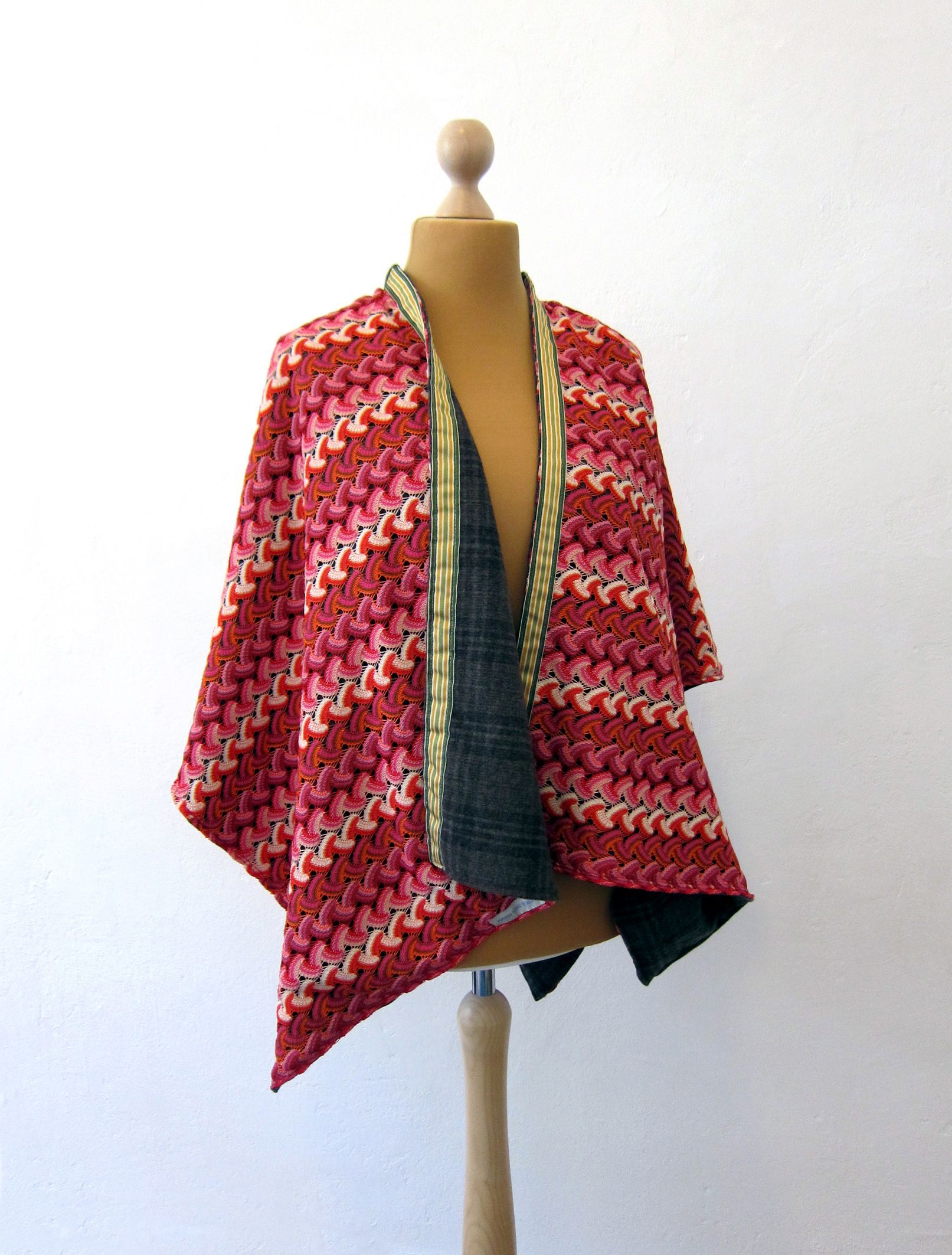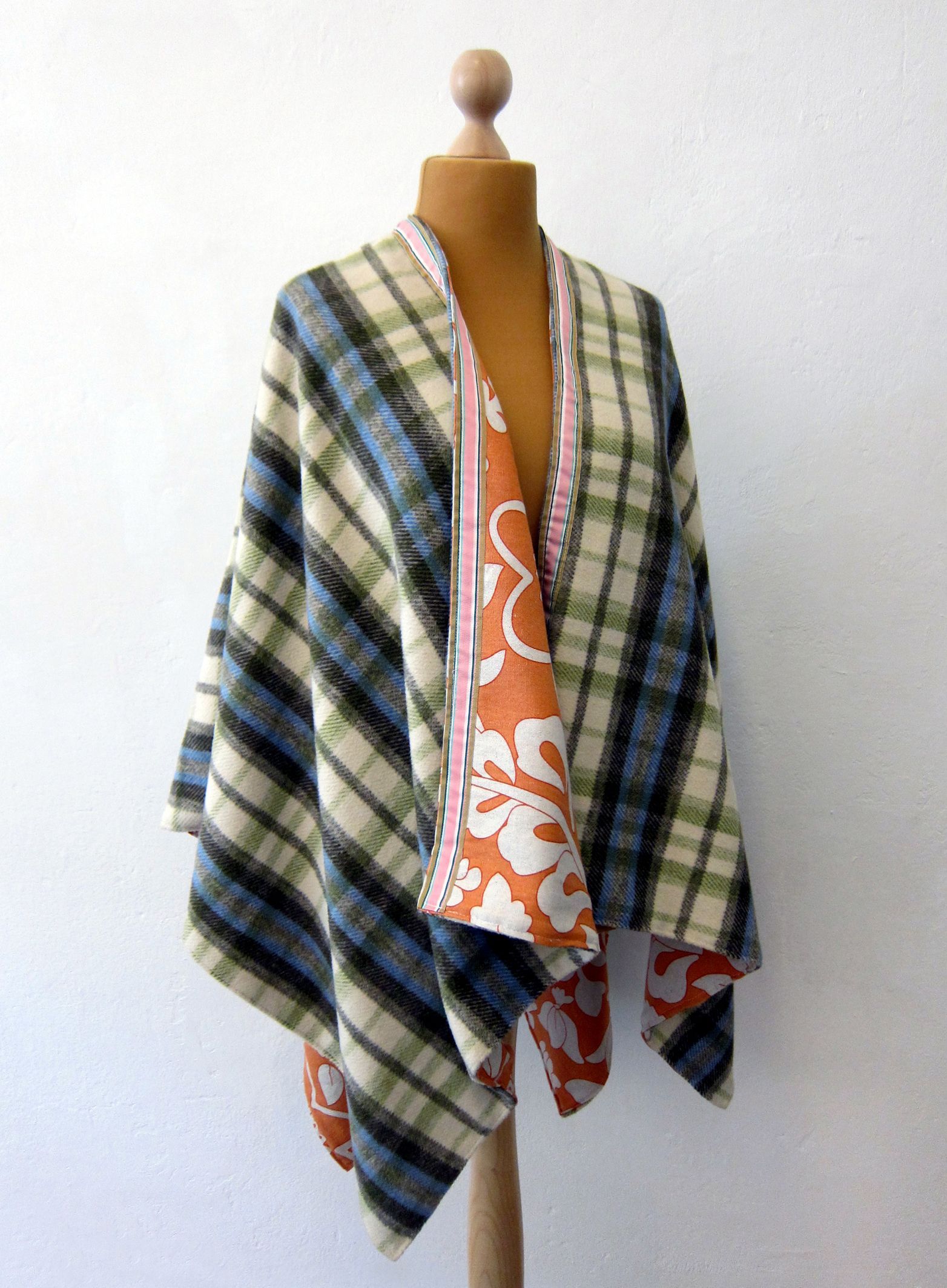 The Helper ist eine tragbare Lebenshilfe, ein besonderes Schmuckstück, ein Wende-Cape, das aus verschiedenen Stoffen, Bordüren und zum Teil Aufnähern besteht (siehe Abbildungen unten). Ein The Helper wärmt, kleidet, schützt und kann als Decke oder Sitzunterlage dienen. Jeder The Helper ist ein aufwendig gearbeitetes Unikat, zwei Capes in einem, von der Künstlerin mit der Nähmaschine und von Hand genäht. Ein Versand ist mit zusätzlichen Kosten möglich. Verfügbare The Helper siehe unten.